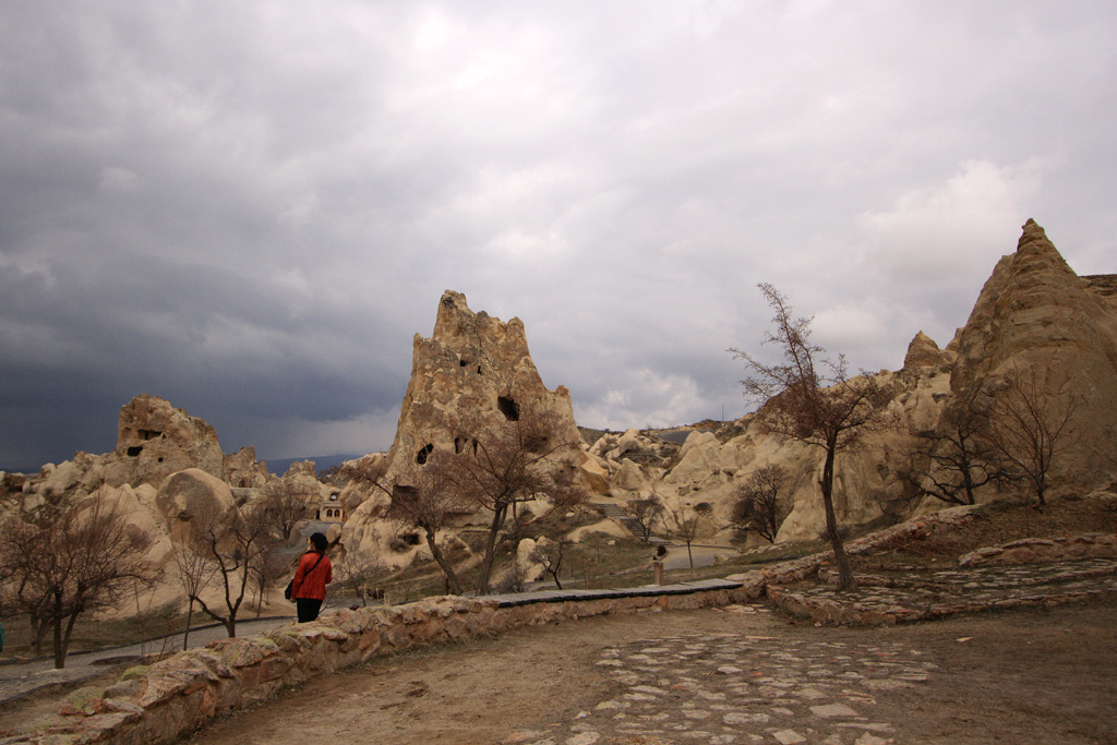 ギョレメ野外博物館の出口です。ちょうど出口に差し掛かった頃に雨がパラパラと降ってきましたので、急いでバスの中に入ります。次は昼食タイムで洞窟レストランへと向かいます。