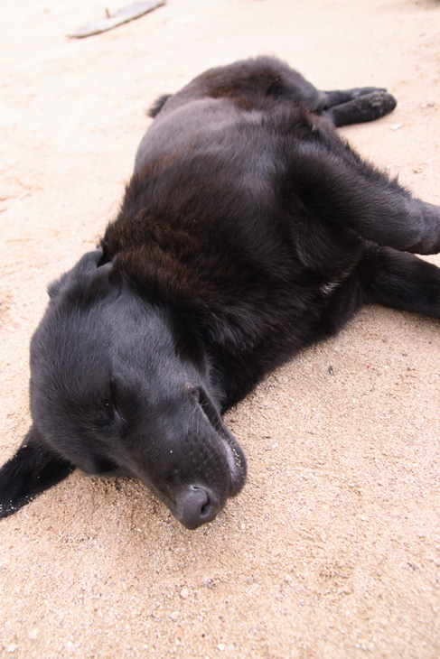 お、黒いわんこを発見♪砂の上で気持ちよさそうに寝ています。