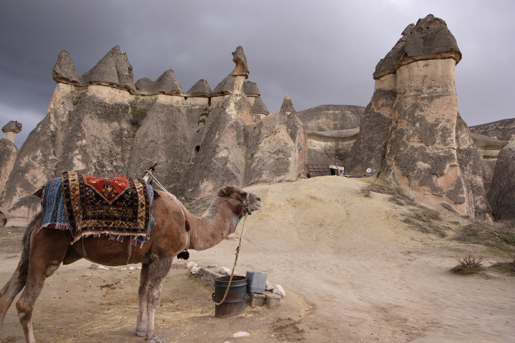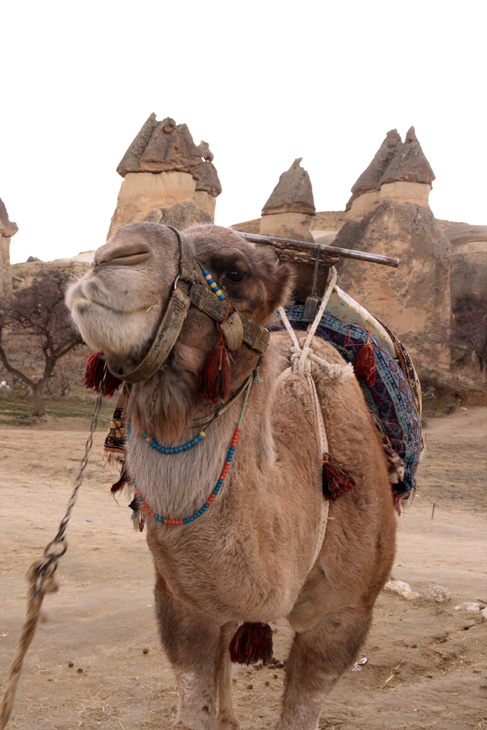 ラクダさんもいます。カッパドキアには、ラクダ岩と呼ばれるラクダの形をした岩もあります。有料になりますが、ラクダさんの背中に乗ることもできます。