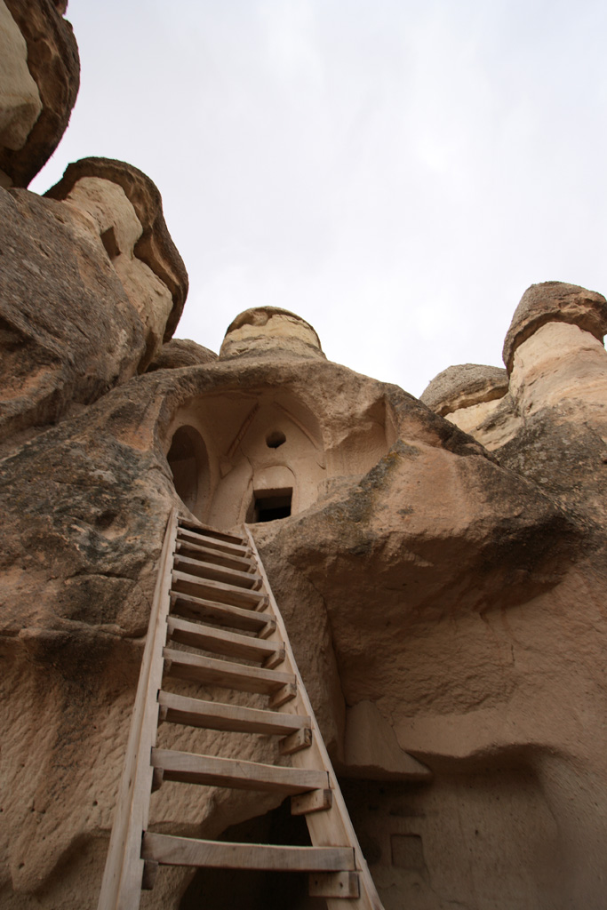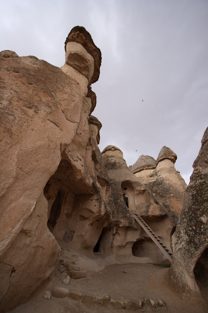 奥の方に入っていくと、キノコ岩の裏の岩を削って造られた岩窟があります。