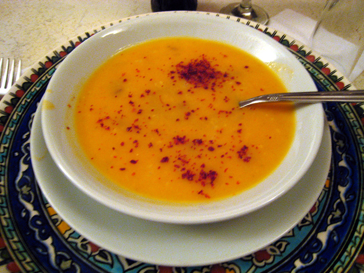 まず1番最初に、スープがでてきました。何のスープかは忘れてしまったのですが、とてもおいしかったです。中に、辛味のある赤唐辛子のような調味料を入れるとピリカラになってさらに美味しくなります。唐辛子を入れすぎてもそれほど辛くはならないのでオススメです。トルコでは、この唐辛子が食卓においてあることが多いです。