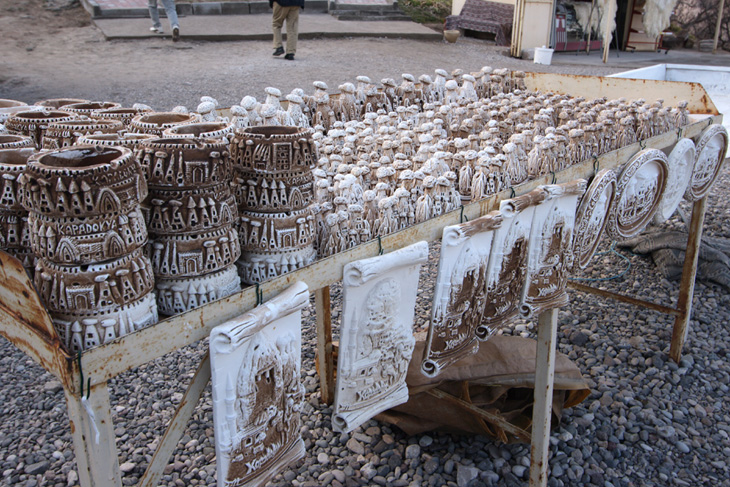 近くの露店には、キノコ岩をかたどった彫刻や置物、灰皿などが売られていました。ウチヒサールの次は、今日の最後の観光地、地下都市カイマクルへと向かいます。