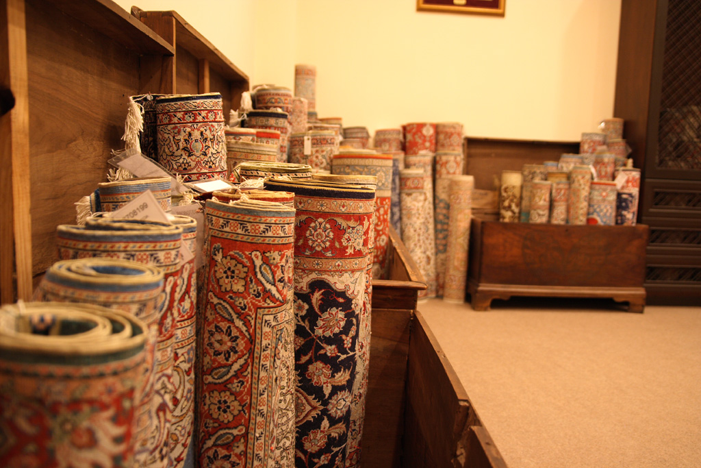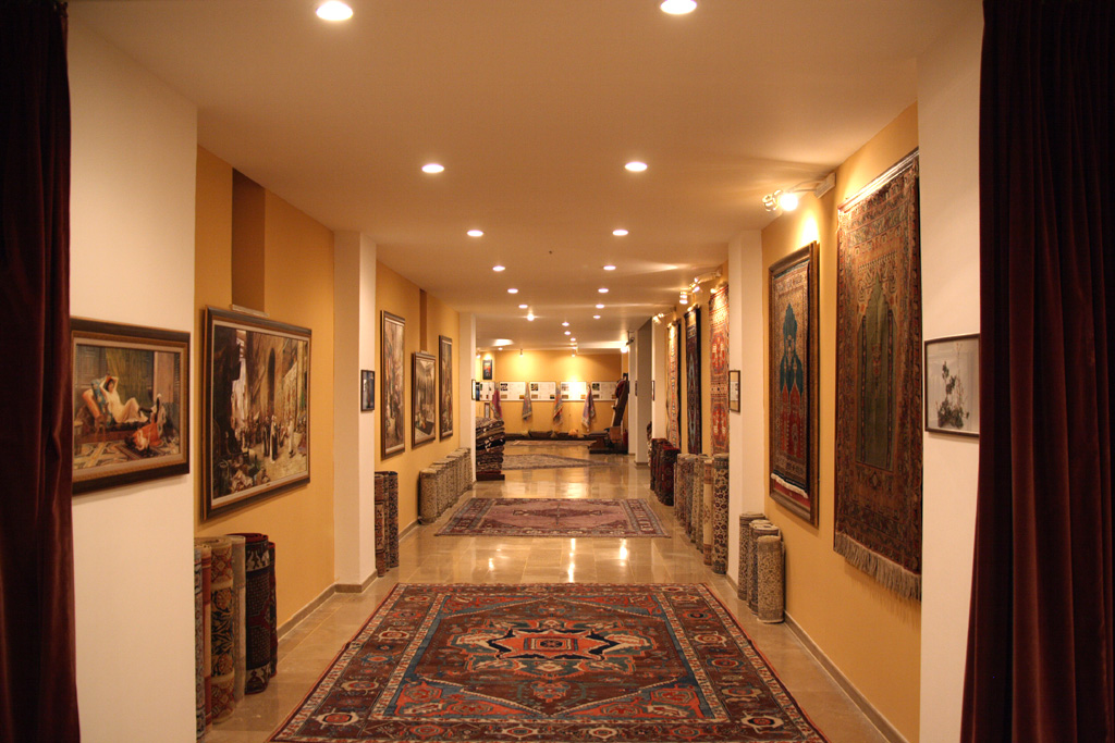 まず、トルコ絨毯屋さんに入ると壁の両脇にトルコ絨毯が飾られています。