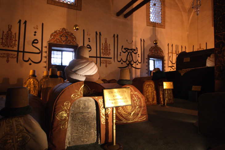 メヴラーナの霊廟は金ピカの照明で照らされています。館内全体がゴールドに光り輝いていてとても綺麗でした。
