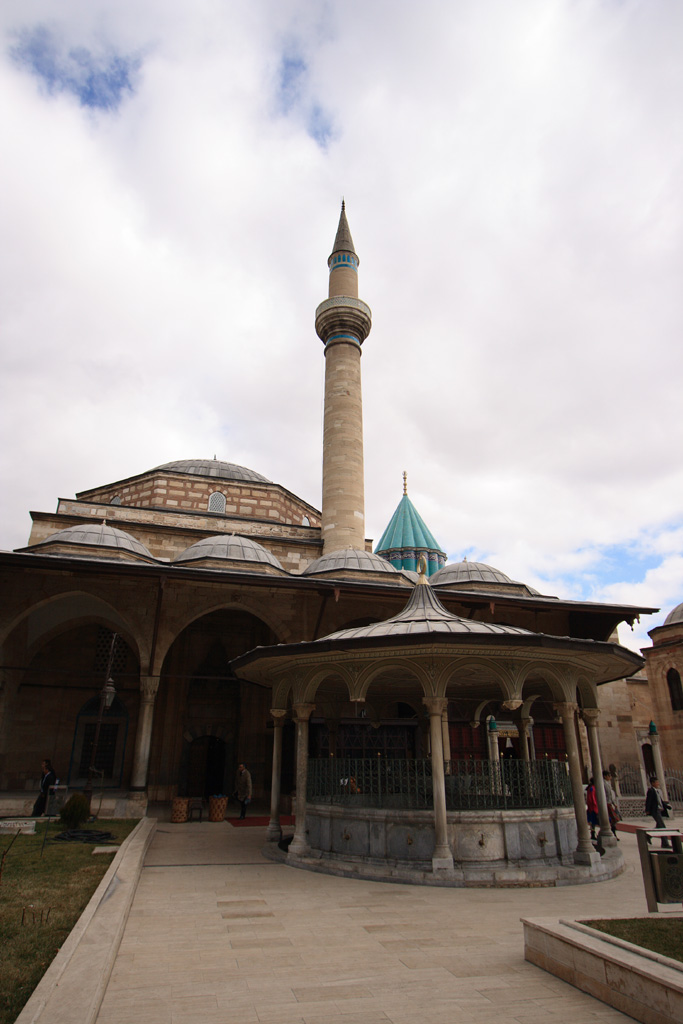 以下の写真は、メヴラーナ博物館に入る前に通るセリミエ・ジャミイです。大理石がふんだんに使われており、スルタン・セリム2世の治世、16世紀に建立されたものです。メヴラーナ博物館内から見るととても綺麗に見えます。