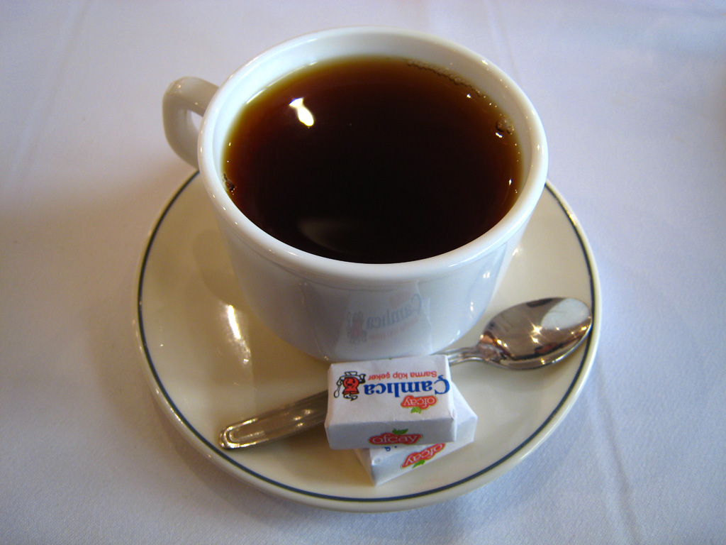 チャイ(トルコ風紅茶)です。ホテルでは、チャイセットのようなガラスのグラスではなく、普通のコーヒーカップで出される事が多いです。
