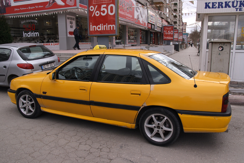 食後の散歩に、外のストリートを歩いているとタクシーを発見。ギリシャと同じく、トルコのタクシーも黄色です。スペルは、「TAKSi」。わかりやすいですね。