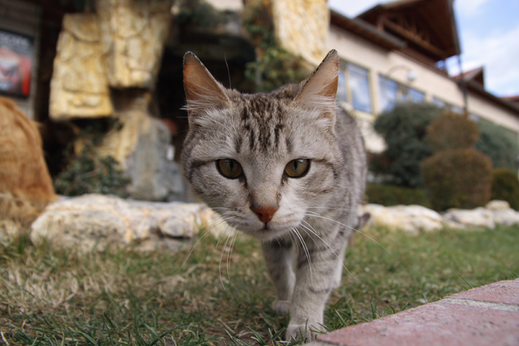 どんどん近づいてくるにゃ♪尻尾がかわいいにゃ。