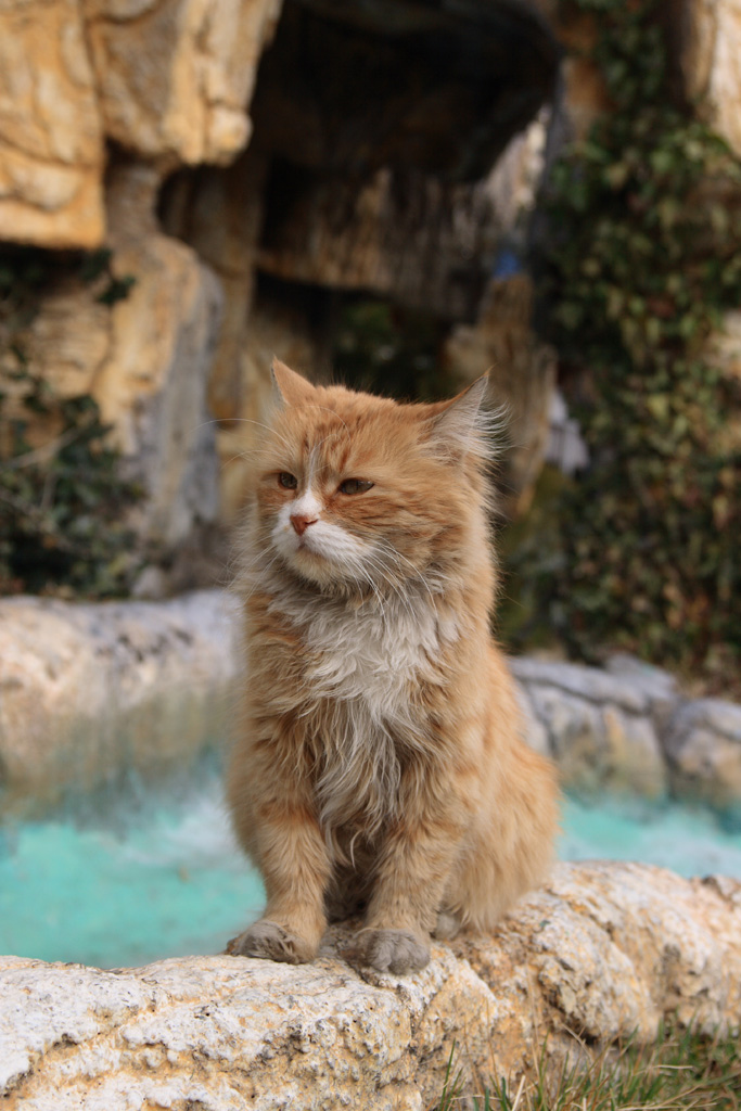 大理石の上で寝っ転がって猫ちゃんを撮影していたんだけど、なかなかこっちを見てくれない…そしたら一緒にツアーにいた女性(33)が僕の後ろに立って猫ちゃんの気をこっちをひかせてくれました♪どうもありがとう~!