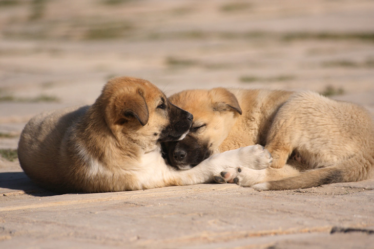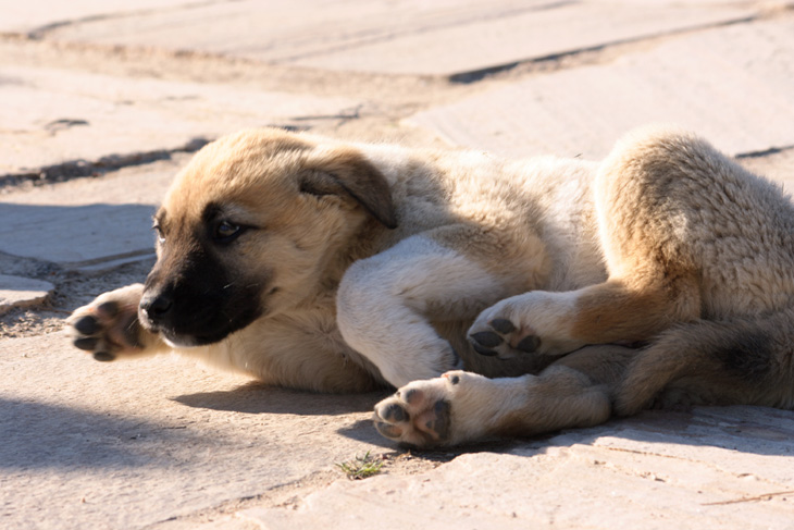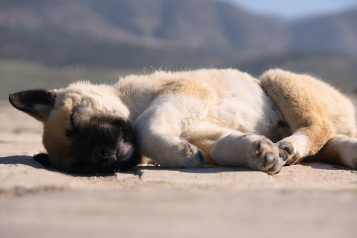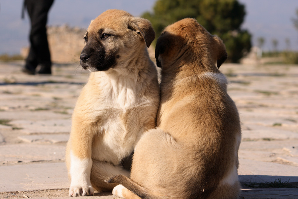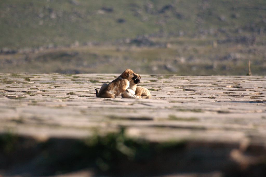 パムッカレの大地にわんこを発見♪かわいい。近寄ってみるわん。