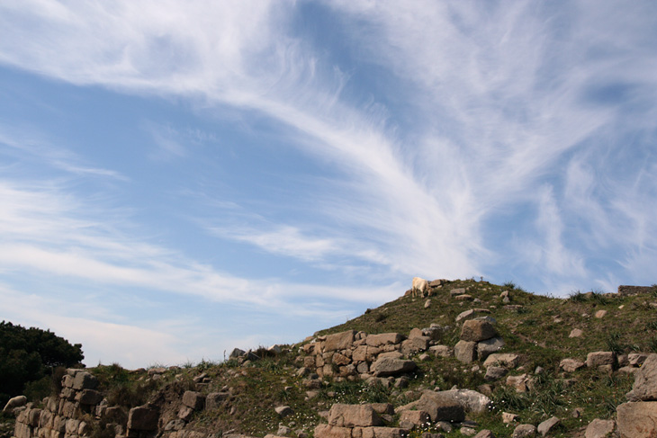 お、丘の上にヤギさん発見。てか、ヤギさんよりも雲の形にびびりましたけどね。