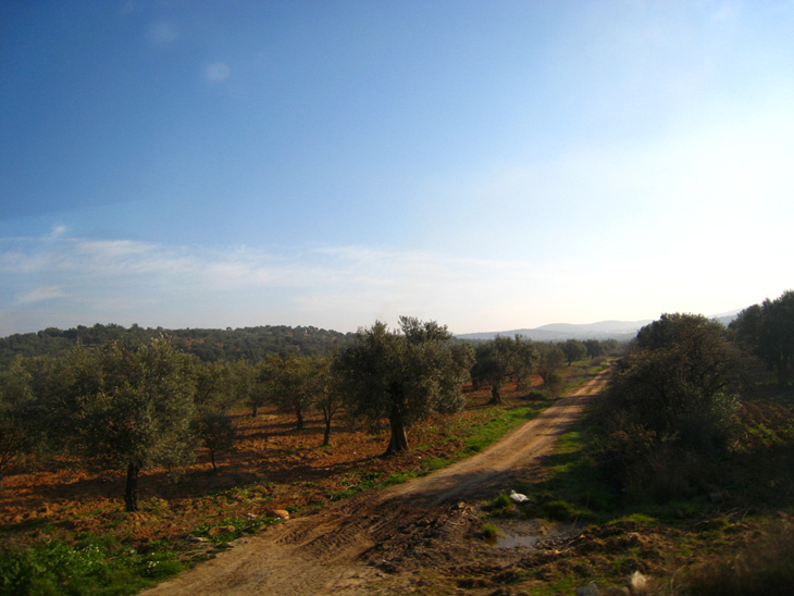 イズミールの街を抜け出ると、いつもと同じ広大な景色が広がっています。ここにきて初めてオリーブの木をたくさん見かけるようになってきました。オリーブの生産は、イタリア、スペイン、ギリシャ、トルコ、シリアなどが5本の指に入り、トルコのエーゲ海沿岸部では最も良質なオリーブオイルが生産されることでも知られています。そろそろ、トルコ石のお店(AGAD)に到着します。