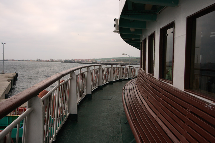 ダーダネルス海峡はヨーロッパ側の半島とアジア側の都市チャナッカレ間を結ぶ海峡のことです。このフェリーは、現地の人々も定期船として利用していて、その大半は高校生が占めていました。