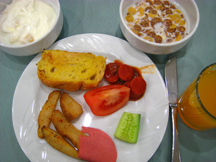 朝食を食べ終え、室内に戻る途中にたまたまエレベーターの会社名を見てみると…ぎょ!シンドラー社だ…危険危険。
