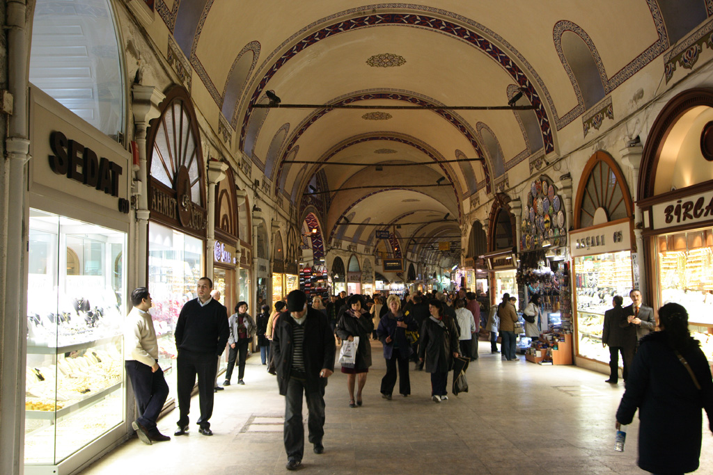 トプカプ宮殿から次に向かう先はグランド・バザール。イスタンブールにある巨大マーケットとして世界的にも有名で、トルコ語ではカパル・チャルシュ(屋根のある市場)と呼びます。バザール内は迷路のように入り組んでいて市場には5000もの店があります。