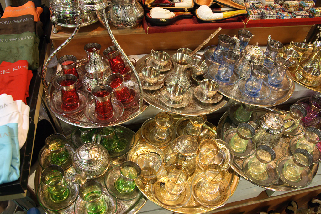 これはチャイセット。トルコ人の生活になくてはならないのがチャイ(トルコ風紅茶)。茶葉とチャイグラスのセットをおみやげにいかがでしょうか。