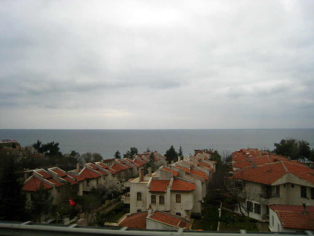 休憩所からイスタンブールまでは1時間30分近くかかります。それまではしばらくバスからの眺めが続きます。イスタンブール市内を通るのでバスの窓から有名な建物がたくさん見えてきます。写真に見えているのは、マルマラ海です。