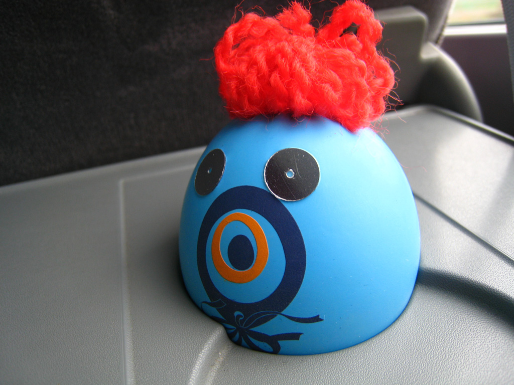 バスの中で暇だったので、朝のフェリーの中で買ったやつをペットボトル入れの中に入れてみました(笑)。かわいい。