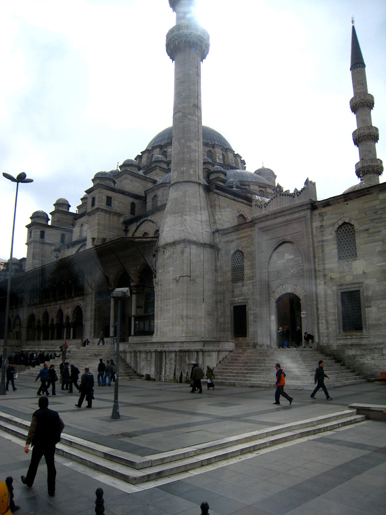 エジプシャン・バザールの隣にあるイェニ・ジャミイです。ガラタ橋のたもとに建つ大きなモスクで、ここも明日訪れます。斜めから撮ったのでバスのガラス窓が写り込みまくっていますね…。