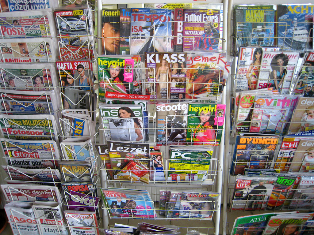 店内の入り口に置いてあったトルコの新聞や雑誌類です。さて、ここから1時間30分は、またバスの中です。今日も移動時間が長いなぁ。