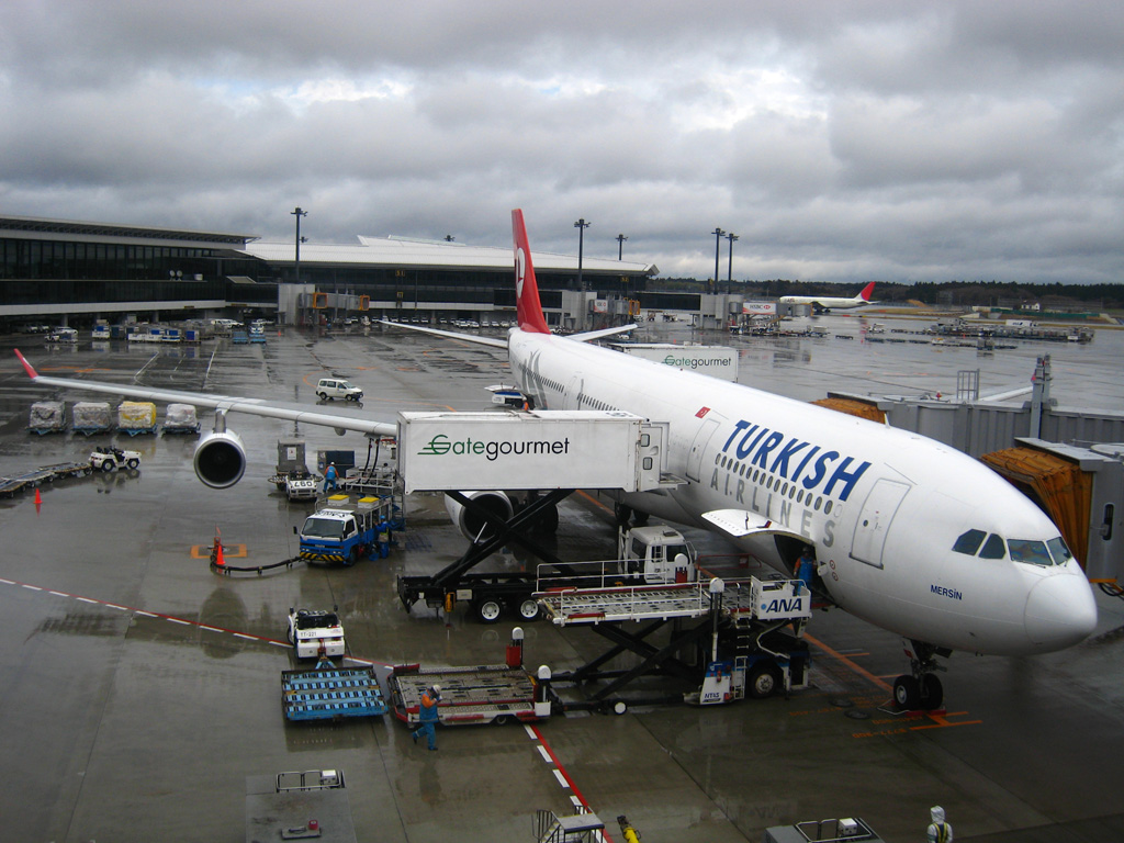 日本時間、午後12時30分頃。成田空港に到着しました。写真は、10時間乗ってきたトルコ航空機です。帰りの飛行機は、大阪辺りから日本に入り、富士山のある静岡あたりを通過し、成田空港に至るルートを通ってきました。