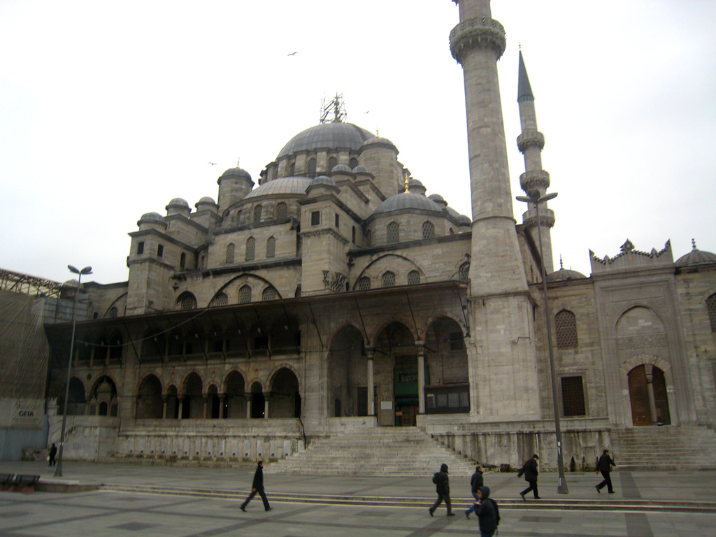 ガラタ橋から右に見える方角に2つのモスクが発見できます。さすがになんという名前のモスクかはわかりませんが、位置的に判断すると、写真右側に見えるモスクがファティフ・スルタン・メフメット・ジャミイ、写真左側に見えるモスクがリュステム・パシャ・ジャミイだと思います。地図と照らし合わせて確認しているので結構自信あります。そして手前に見えているフェリー乗り場は、エミノニュ・フェリー乗り場です。