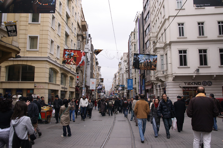 新市街の中に入っていくと、どこを見ても人・人・人。このイスティクラル通りは、イスタンブールの銀座通りと呼ばれており、両端に洋服やジュエリー、老舗の革製品のお店、レストランなどが立ち並んでいます。ここにきて初めて都会のトルコを見たような気がしました。