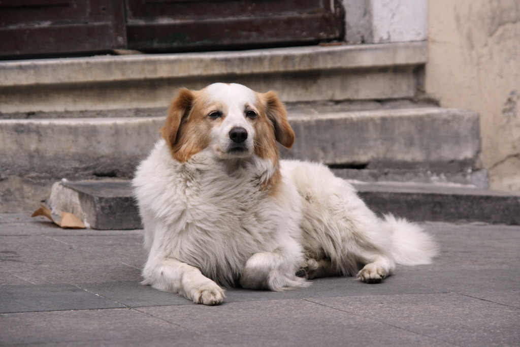 昼食のレストランに行く途中、わんちゃんを発見。かわいいわん。