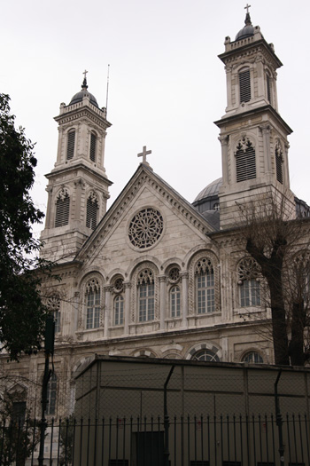 タクシム広場から真っ直ぐにイスティクラル通りへと進みます。遠くに教会が見えています。昼食レストランは、教会のすぐ傍にあります。