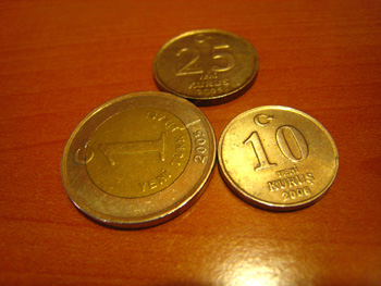 ミネラルウォーターは買う場所によってかなり価格差がありますが、通常は500ml のものが50クルシュ(1リラの半分)、1リットルのものが1リラ(1YTL)程度です。ただし、この値段は最安値価格なので、場所によっては1リットル2リラだったり、レストランなどでは500mlで4リラとか5リラとられる場合もあります。大きなスーパーなどでは現地のトルコ人も利用しているため、安く買えることが多いです。イスタンブールのような大都市になればなるほど価格が高くなることもあります。